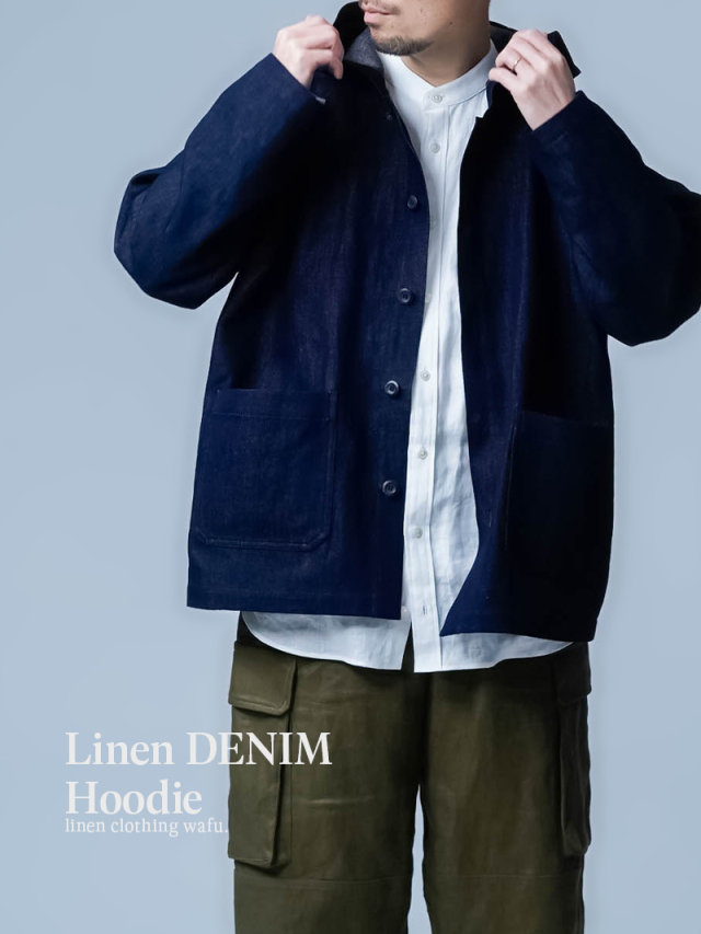 【リネンデニムパーカー】パーカーを超えて洗練された『余白』を纏う リネンデニム パーカー / ダークインディゴ