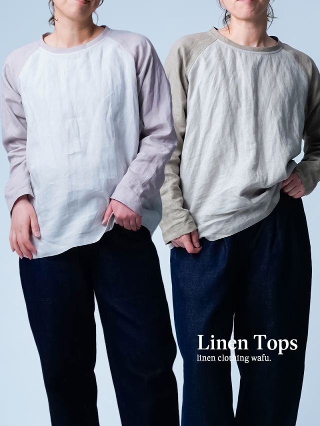 【リネントップス】無言が語る、素材と設計の自信 ラグランスリーブトップス / 2色展開
