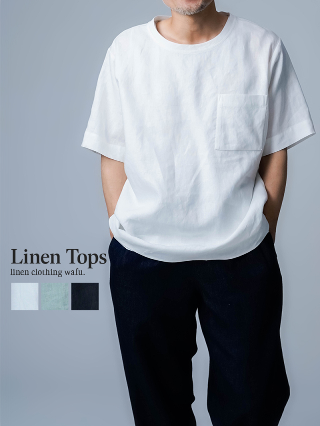 【リネントップス】盛らずに整う、リネンの日常着 胸ポケット ビッグTシャツ / 3色展開