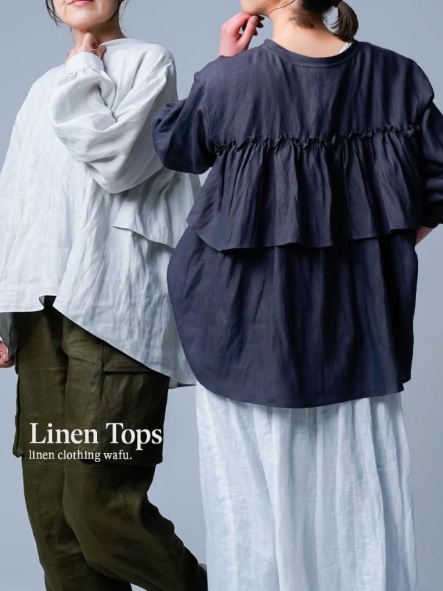 【リネントップス】背中で語る、大人の余韻。バックフリル リネンブラウス / 2色展開